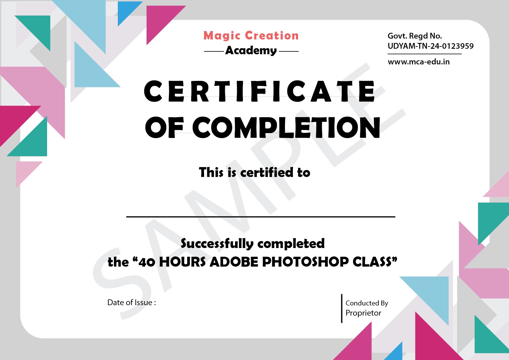Magic Creation Academy is proudly certified by MSME, an Indian Government recognition that underscores our credibility, quality, and compliance with national standards.
